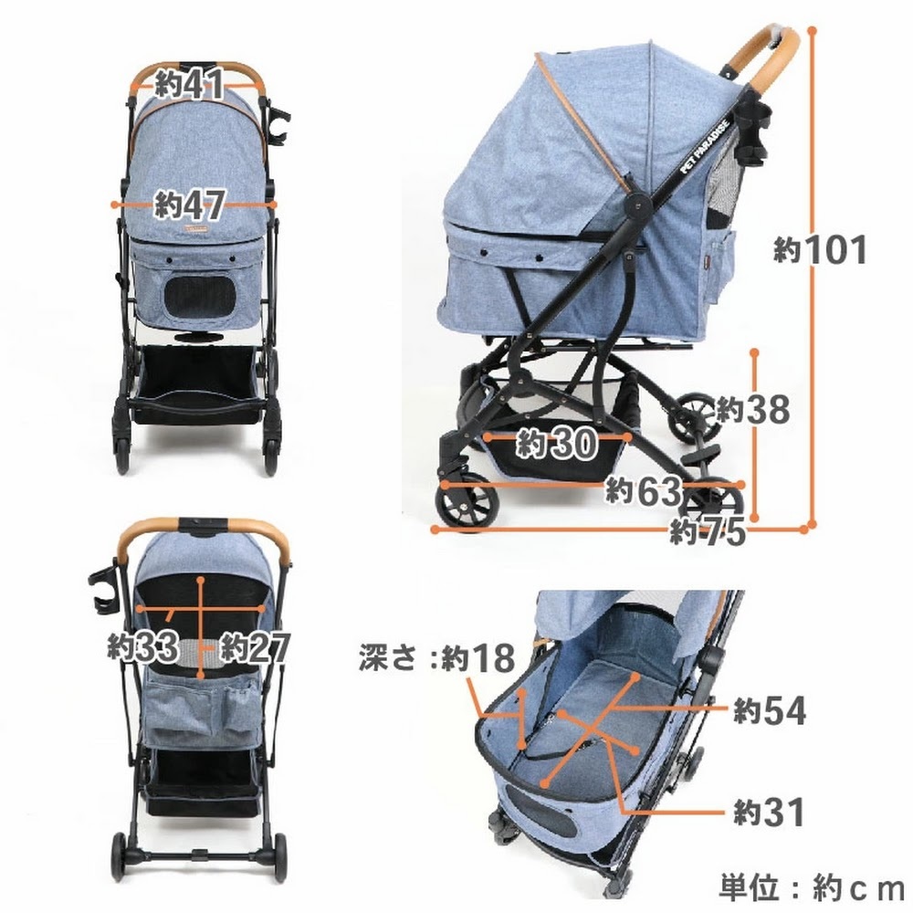 【Size】Width: about 48cm Depth: about 72cm Height: about 101cm Approximate weight after folding: about 6.3kg Applicable weight: up to about 15kg